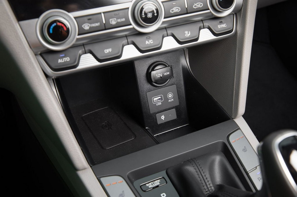 Более мощный 150-сильный двигатель объемом 2,0 литра становится доступным начиная с комплектации Active (для 1,6-литровой Элантры она — «топовая»). Тут есть передние боковые подушки безопасности и шторки, двухзонный климат-контроль, датчик дождя, задний парктроник, а при наличии 2,0-литрового мотора — еще и система выбора режима движения Drive Mode Select. Наконец, в топовой версии Elegance покупателям становятся доступны светодиодные фары, датчики парковки спереди, подогрев задних сидений, беспроводное зарядное устройство для смартфона (стандарт Qi) и другое оборудование.