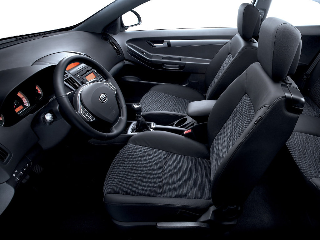 Kia Pro Cee’d первого поколения предлагался с внушительным списком доступного оборудования и гарантированно высоким уровнем оснащения в топовых версиях. Например, в списке оборудования верхних комплектаций 3-дверного хэтчбека значатся: регулировка руля по высоте и вылету, электростеклоподъемники, складывающиеся электрозеркала, центральный замок, иммобилайзер, кондиционер, охлаждаемый перчаточный ящик, передний подлокотник, Радио+CD+MP3, мультируль и дистанционное управление аудио на руле, бортовой компьютер, кожаный руль и ручка КПП, круиз-контроль и даже зимний пакет, включающий обогрев боковых зеркал, лобового стекла и передних сидений. Стандартные колесные диски для Kia pro_cee’d — обычные 15" штампованные с декоративными колпаками, но в более дорогих версиях — легкосплавные на 16 дюймов.