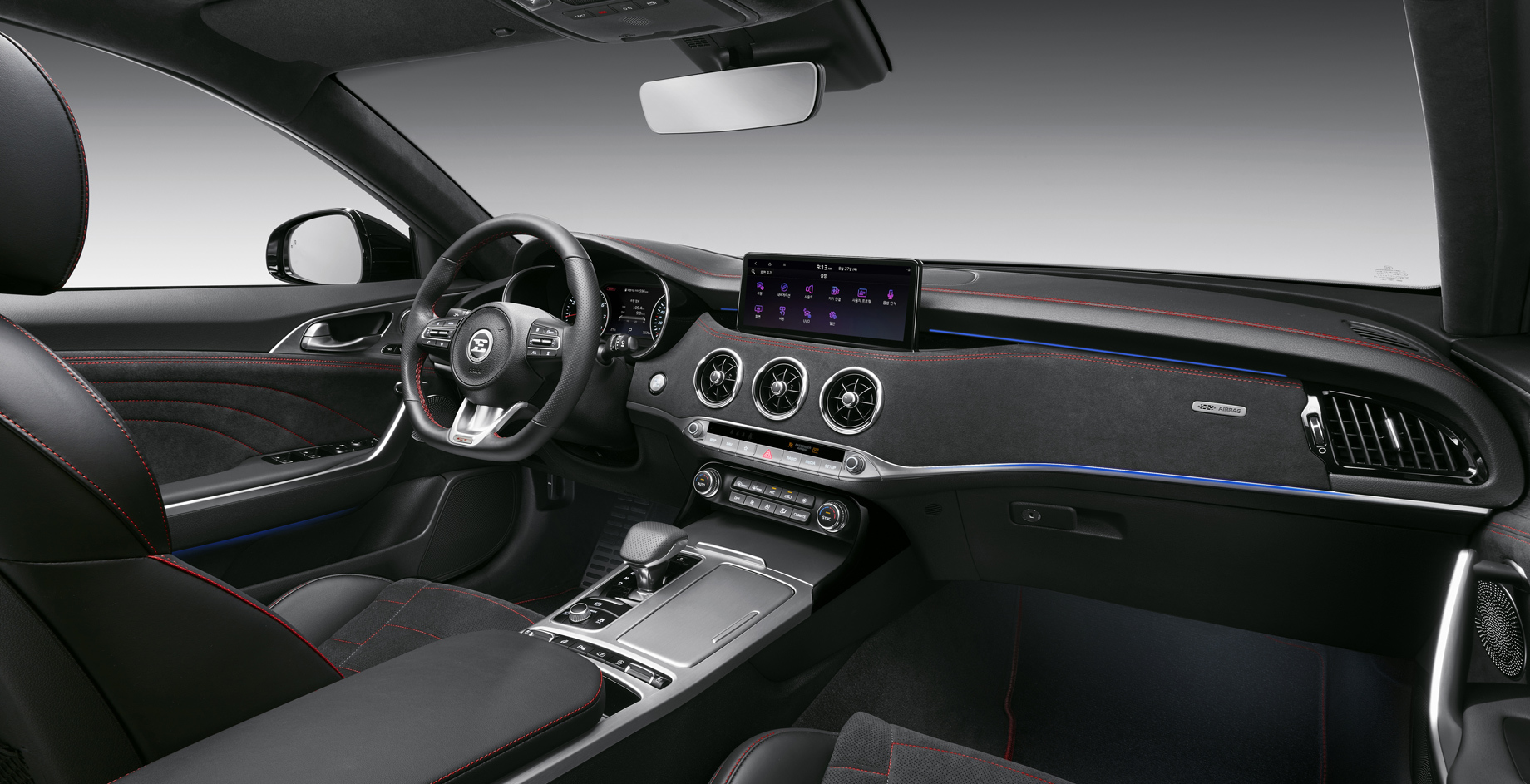 Модернизированная мультимедийная система Стингера, чей сенсорный экран может составлять 8,0 или 10,25 дюйма, готова связываться по Bluetooth с двумя телефонами одновременно.
