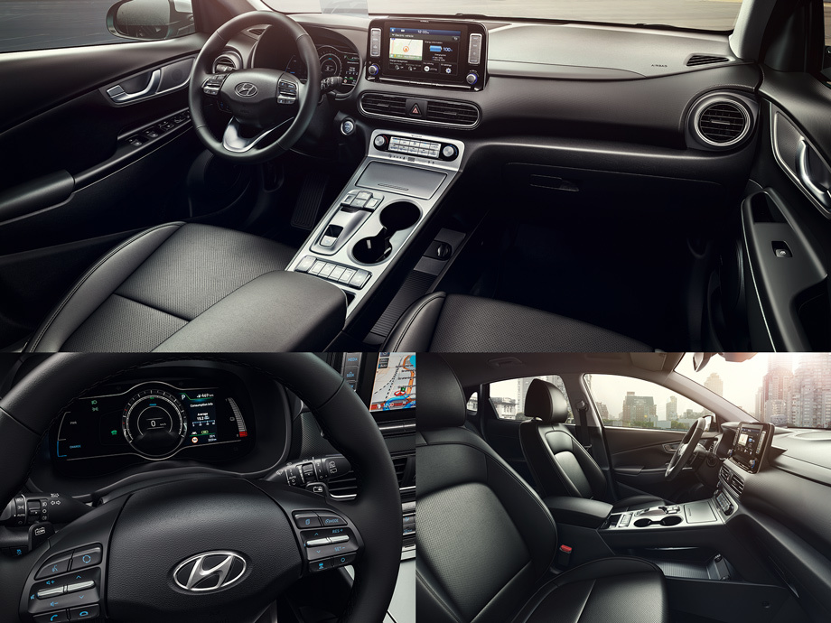 Первый на европейском рынке чисто электрический субкомпактный паркетник Hyundai Kona Electric получил две версии. Базовая — это мощность 99 кВт (135 л.с., 395 Н•м), разгон до сотни за 9,3 с, максималка 167 км/ч, батарея ёмкостью 39,2 кВт•ч и запас хода в 300 км по циклу WLTP. Топовая модификация развивает 150 кВт (204 л.с., 395 Н•м), выполняет упражнение 0–100 км/ч за 6,7 с и благодаря большему аккумулятору (64 кВт•ч) пробегает без подзарядки 470 км. Предельная скорость у неё ровно та же. Привод у всех батарейных Кон пока исключительно передний.
