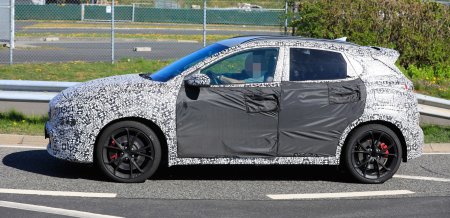 Несмотря на маскировку, уже можно заметить решётку радиатора с гигантскими сотами, перекроенный передний бампер и крупные тормозные диски с красными суппортами.