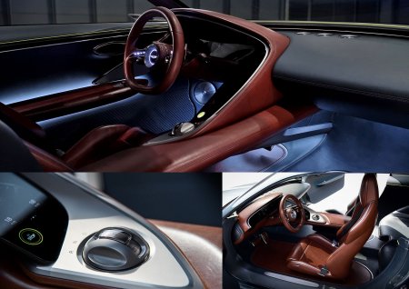Под решёткой Crest Grille с металлической структурой и трёхмерным паттерном G-Matrix расположен «сложный» сетчатый воздухозаборник. Длинный капот Clamshell и крылья должны казаться единым целым. Сдвижная дверца зарядного порта так ловко запрятана, что её не найти и на цифровом аватаре.