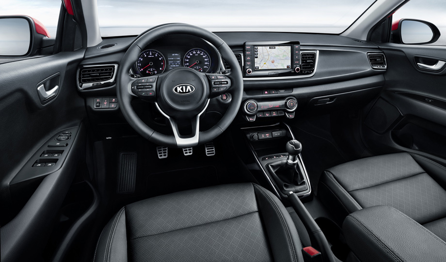 Салон Rio ориентирован на водителя, а передняя панель повёрнута к нему. По центру находится новая информационно-развлекательная система с «плавающим» интерфейсом HMI, который позволил минимизировать количество кнопок.