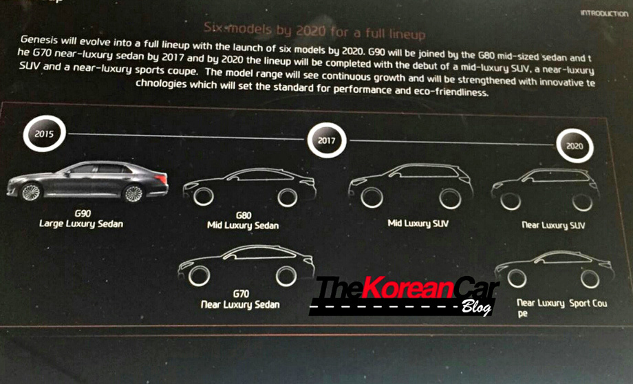Полгода назад компания Hyundai выделила марку Genesis в самостоятельный премиальный суббренд. Пока в линейке есть только седан G90, однако с самого начала корейцы заявили, что модельный ряд будет стремительно пополняться. И вот в Сеть попал скан с планами фирмы на будущее. Судя по изображению, достоверность которого не подтверждена официально, к 2020 году под брендом Genesis будет выпущено шесть автомобилей.