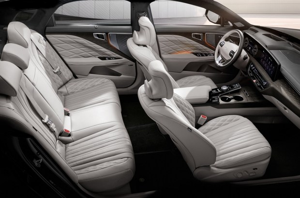 Интерьер K8 также демонстрирует несколько новых дизайнерских новшеств KIA. Первоклассный салон сочетает в себе премиальную роскошь с непринужденным стилем, новейшими технологиями и непревзойденным комфортом. Отметим изогнутый дисплей, объединяющий виртуальную панель приборов и информационно-развлекательные технологии в одном тонком корпусе. K8 также является первым автомобилем KIA, оснащенным передовой аудиотехнологией от Meridian - современной системой объемного звучания премиум-класса с 14 динамиками. Также в салоне установлен совершенно новый руль