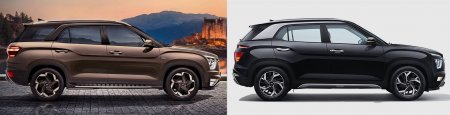 Размеры трёхрядной машины не названы, длина Креты (справа) — 4300 мм. При сравнении нужно учитывать, что у Алькасара колёса на дюйм больше (18-дюймовые). По расстоянию между осями Alcazar опережает главных конкурентов MG Hector Plus (2750 мм), Tata Safari (2741) и Mahindra XUV500 (2700).