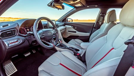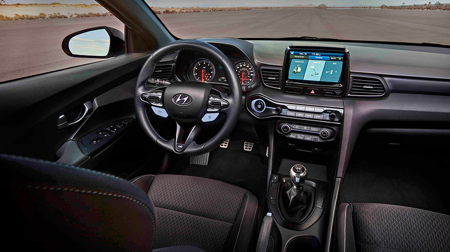 «Четвёрка» 2.0 с непосредственным впрыском и двухступенчатым впуском выдаёт 275 сил и 353 Н•м и трудится в паре с шестиступенчатой «механикой». О динамических характеристиках компания пока молчок, но известно, что Hyundai i30 N пакетом Performance до сотни ускоряется за 6,1 с при максимальной скорости 250 км/ч. По умолчанию на Veloster N ставится система выбора режимов движения N Grin Control (Normal, Sport, N, Eco и N Custom). Меняются калибровки двигателя, акселератора, выпускной системы с клапанным регулированием, рулевого управления и системы стабилизации, а также адаптивных амортизаторов и электронноуправляемой блокировки, которые входят в список базового оснащения.