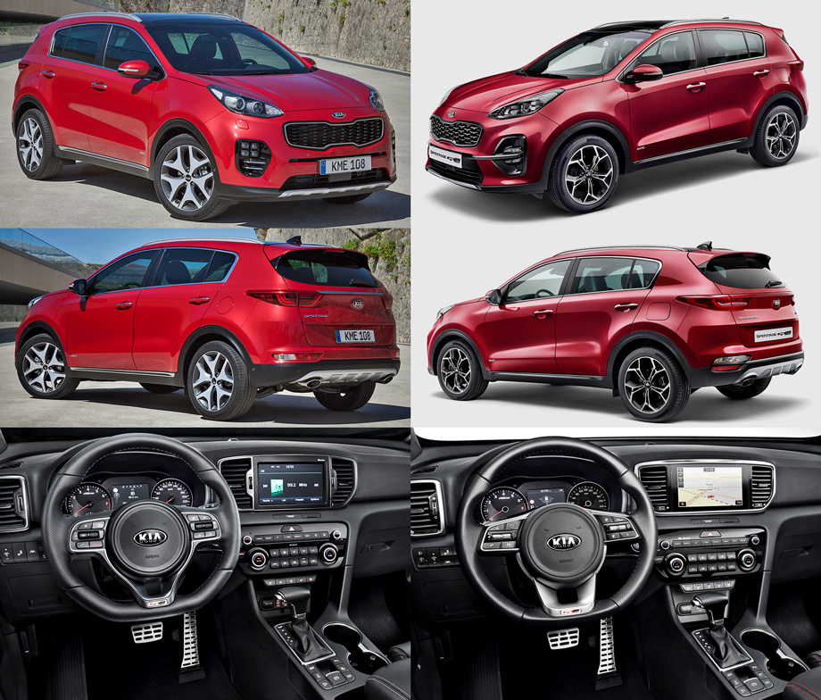 От спорных противотуманок «ледяной куб» с четырьмя светодиодами дизайнеры отказались, и у Спортейджа теперь есть «бивни». Решётка поменяла внутреннюю структуру, заменены оба бампера. На всех фото показана топ-версия GT Line, отличающаяся глянцем, хромом, колёсами и шильдиками.