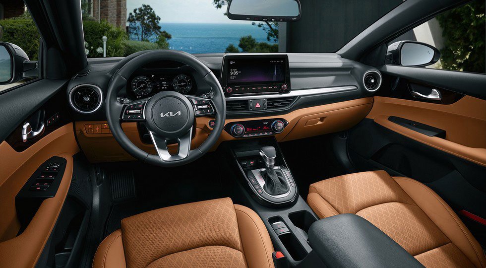 Главные обновки в салоне – мультимедийная система с дисплеем диагональю 10,25 дюйма (у прежнего K3/Cerato 8-дюймовый экран) и виртуальная «приборка» аналогичного размера. Также список оборудования пополнили электрический стояночный тормоз и система дистанционного запуска мотора. Кроме того, для интерьера предусмотрен новый вариант расцветки – сочетание черного с «насыщенным оранжево-коричневым».