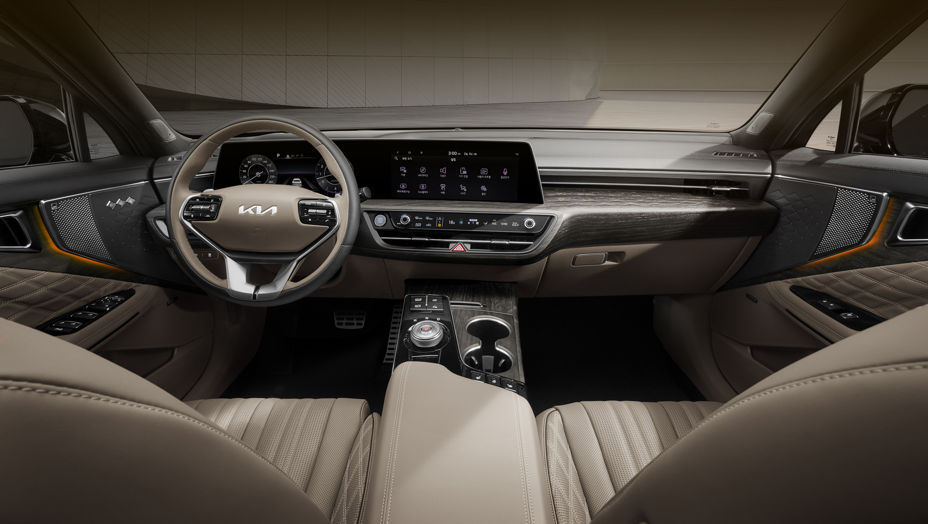 По общему впечатлению от интерьера K8 потягается с флагманским K9/K900/Quoris, но салон K8 выглядит современнее и технологичнее. В узких дефлекторах на передней панели и консоли читается отсылка к новейшим моделям концерна вроде Карнивала и Ионика 5.