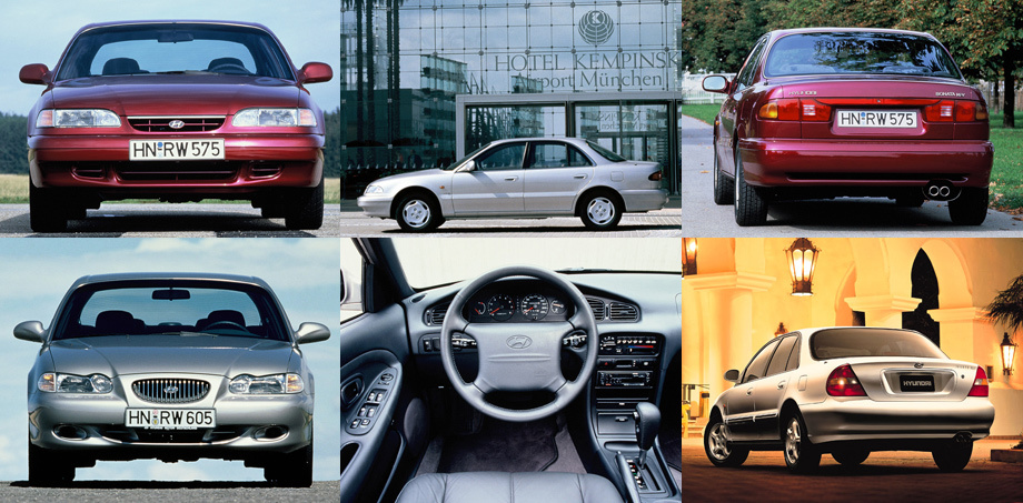 Первое поколение седана Hyundai Sonata (серия Y) появилось в 1985 году. Фактически это была модернизированная заднеприводная модель Stellar («первая» Sonata продавалась на ряде рынков как Stellar II). Шасси исходной модели Stellar было заимствовано у седана Ford Cortina пятого поколения, но кузов был свой, кисти Джорджетто Джуджаро. Изменения в Сонате включали новую переднюю подвеску (Макферсон вместо двойных рычагов), расширенную гамму моторов (к агрегатам 1.6 и 1.8 добавилась двухлитровая «четвёрка» Mitsubishi) и ряд технических улучшений. Коробки передач — «механика» на пять ступеней и «автоматы» (3 и 4 ступени). К летней Олимпиаде в Сеуле была создана специальная версия Stellar 88.