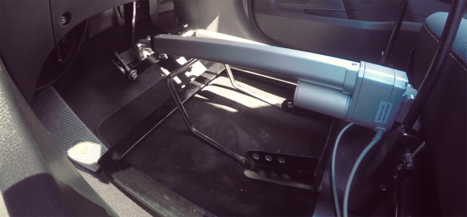 Опыт не ставил целью мысленное управление рулём. Специальная рамка с приводами была помещена на месте водителя и контролировала газ и тормоз. Корректировать направление пришлось инженеру, сидевшему на втором ряду. У него был руль с удлинителем. Испытуемые с сенсором ЭЭГ на голове располагались на переднем пассажирском кресле.
