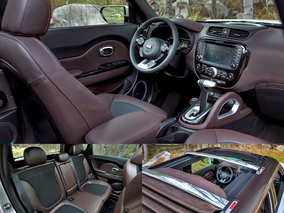 Коричневая кожа с текстильными вставками, алюминий, необычный селектор «автомата» — по замыслу авторов дизайн интерьера должен вызывать ассоциации со спортивным снаряжением: сноубордами, горными лыжами, велосипедами. Другой намёк на активный образ жизни — сдвижная мягкая крыша.