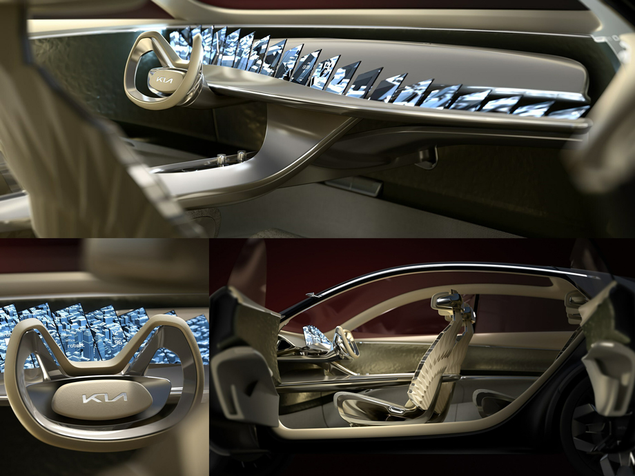 Ирония и сатира не свойственны автодизайну, но 21 дисплей «со сверхвысоким разрешением» в салоне — это юмористическая и «непочтительная» реакция на гонку экранов, затеянную некоторыми автопроизводителями. В KIA говорят: «Экранная стена ещё и очень функциональна».
