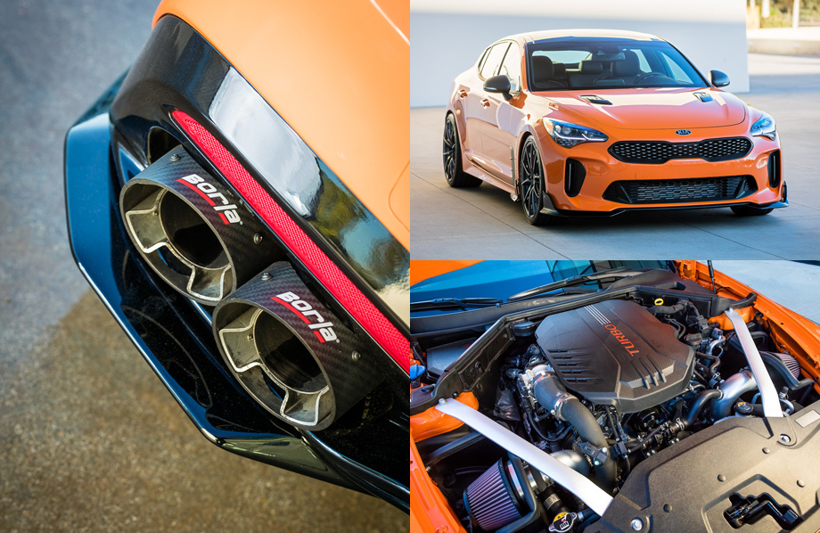 В отличие от собратьев по стенду, пятидверка Stinger GT Federation может похвастать не только доработанным экстерьером, но и небольшой прибавкой мощности.