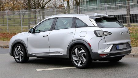 Водородный кроссовер Hyundai FCEV, показанный летом в Сеуле как прототип, будет представлен в серийном виде на выставке электроники CES в Лас-Вегасе, которая откроется в начале января. Фотошпионы заметили готовый к премьере паркетник на дорогах Германии без маскировки и обнаружили, что корейцы ничего не стали менять во внешности машины. Сохранился даже дизайн колёс с низким сопротивлением качению.