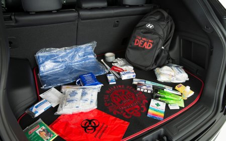 Автомобиль неплохо оборудован: багажник на крыше, премиальная аудиосистема, двухзонный «климат», мультимедийка с навигацией и семидюймовым дисплеем... В комплект входит возможность вызова чрезвычайной помощи на дороге, что пригодится при нападении зомби, как шутят в компании. И это ещё не всё: в багажнике Tucson The Walking Dead Special Edition владельцы найдут рюкзак с набором выживания при зомби-апокалипсисе.