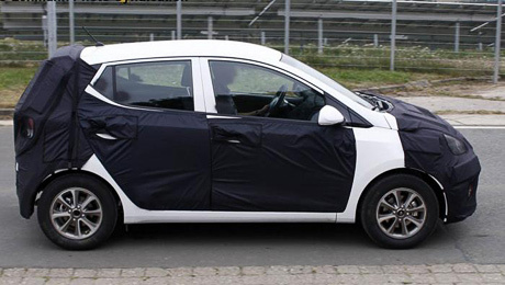 Новая пятидверка Hyundai i10 будет представлена на Франкфуртском автосалоне в следующем году, а в продажу эта машина должна поступить к концу 2013 года. Пока же следующее поколение модели можно рассмотреть на шпионерских кадрах. Судя по ним, позади задних дверей у малолитражки появится крохотное третье окошко, в головных фарах — светодиоды дневного света, а общее оформление передней части должно перекликаться с хэтчбеком i30.