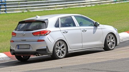 Прототип замечен папарацци на Нюрбургринге совсем без камуфляжа. Внешне машинка выглядит точно так же, как i30 N, однако это временно. Чужие бамперы отличаются по цвету от кузова, потому что у варианта N-Line будут свои, попроще.