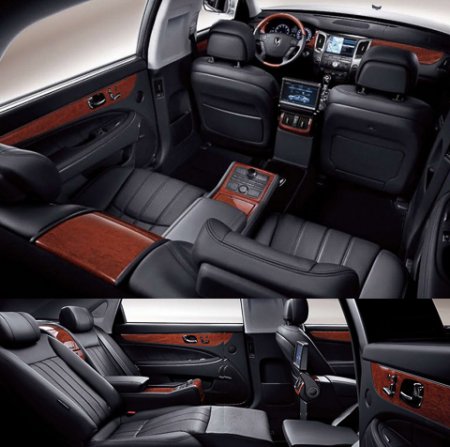 Самое главное — на сколько увеличили размер колёсной базы. На 300 мм — до 3345! Таким расстоянием между осями больше никто в классе не похвастается. К примеру, у Мерседеса S 500L и BMW 750Li — 3165 и 3210 мм соответственно. Правда, корейский седан выглядит типичным лимузином с металлической вставкой в районе средней стойки. Конкуренты, включая Lexus LS и Volkswagen Phaeton, смотрятся гармоничней.
