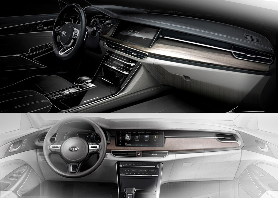 Не менее внушительным рестайлинг оказался внутри. На передней панели поменялось размещение дефлекторов вентиляции и их форма. Центральные, ранее обнимавшие экран с боков, перебрались вниз. Сам дисплей мультимедийной системы, судя по рисунку, нарастил диагональ раза в полтора. Изменились и кнопки на центральной консоли. А селектор «автомата» из традиционного и относительно высокого рычага трансформировался в низенький джойстик. К слову, «автомат» у дореформенного K7 зависит от двигателя и может быть шести- или восьмиступенчатым.