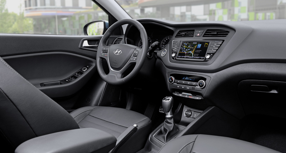 В салоне у версии Active нет никаких отличий от стандартного хэтчбека Hyundai i20.