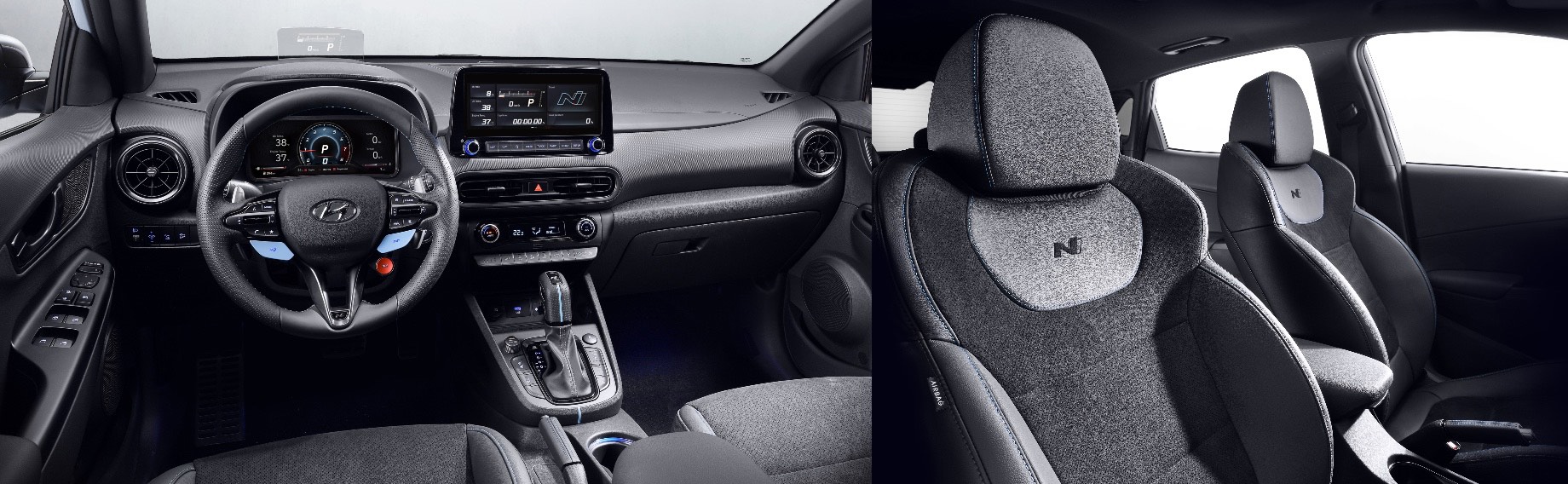 Kona N бывает только переднеприводной, но ведущая ось дополнена электронноуправляемой блокировкой дифференциала. От стандартной Коны «заряженная» отличается также усиленным дополнительными точками сварки кузовом, заниженной подвеской, перенастроенными адаптивными амортизаторами, электроусилителем и системой стабилизации. Кроме того, будут доступны пять ездовых сетапов (Eco, Normal, Sport, N и настраиваемый Custom) и лонч-контроль. А ведь ещё отдельно для преселективного «робота» есть свои режимы работы — базовый N Power Shift, трековый N Track Sense Shift и неистовый N Grin Shift, в котором на 20 с силовой агрегат выдаёт максимум своих возможностей.