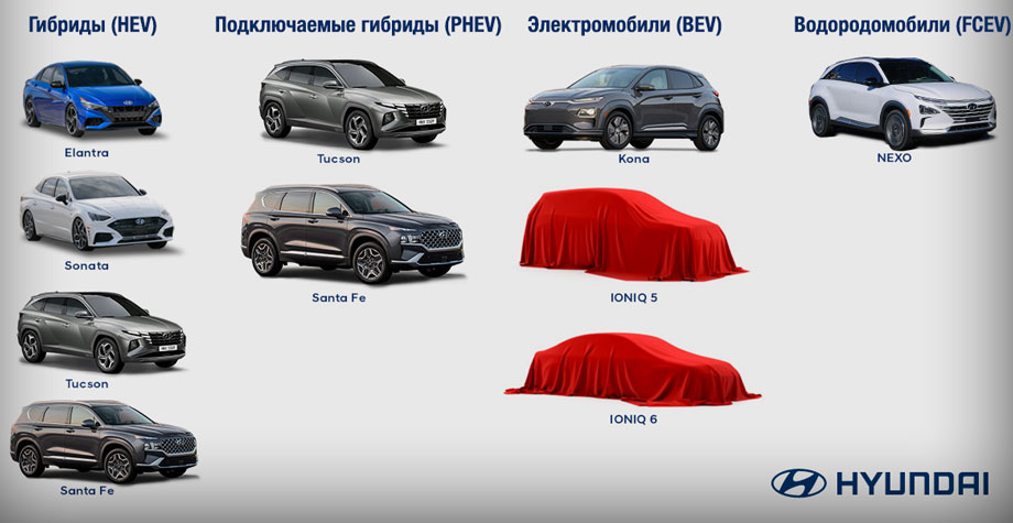 Перечень электрифицированных моделей Hyundai для США корейцы опубликовали ещё в ноябре 2020-го. Большинство бензоэлектрических можно купить: Elantra Hybrid (от $23 550), Sonata Hybrid (от $27 750), Tucson HEV (от $29 050), Santa Fe HEV (от $33 650). Вариант PHEV для Тусана появится летом.