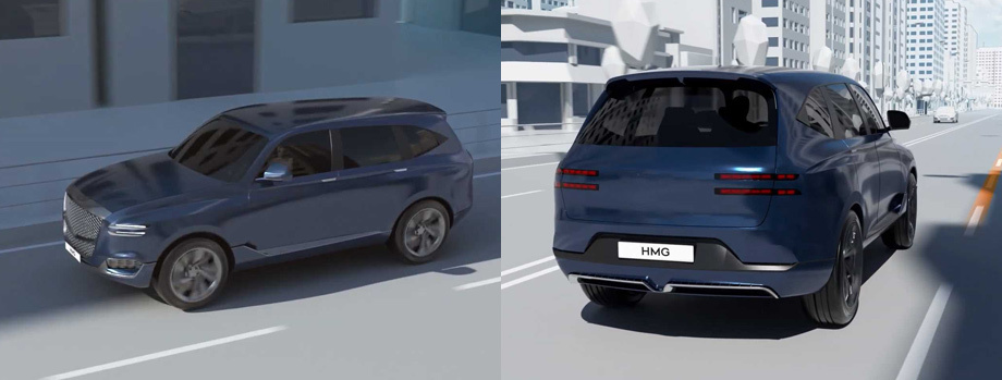 Ранее мы видели GV80 в чужом кузове. Нынче (съёмка октябрьская) он разъезжает в собственном. Под камуфляжем скрывается нечто среднее между концептом и 3D-моделью из ролика.