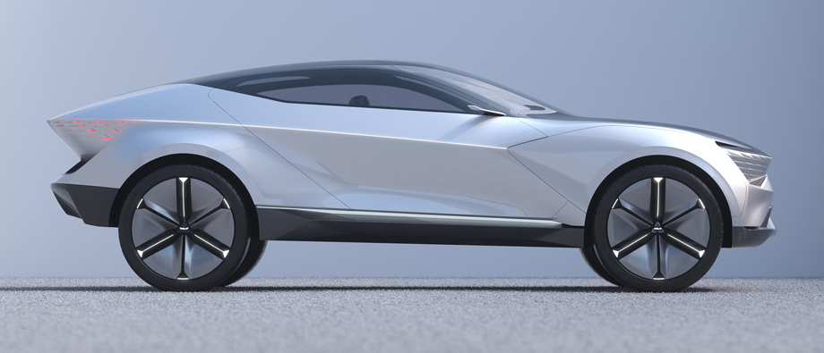 Компания сообщила, что облик концепта вдохновлён «летающими тарелками и НЛО». Неслучайно в кузове прослеживается симметрия заострённых передних и задний частей, ярко выраженный перегиб на борту и гладкие поверхности с минимумом декора. Длина концепта равна 4850 мм, высота — 1550, колёсная база — 3000 мм.