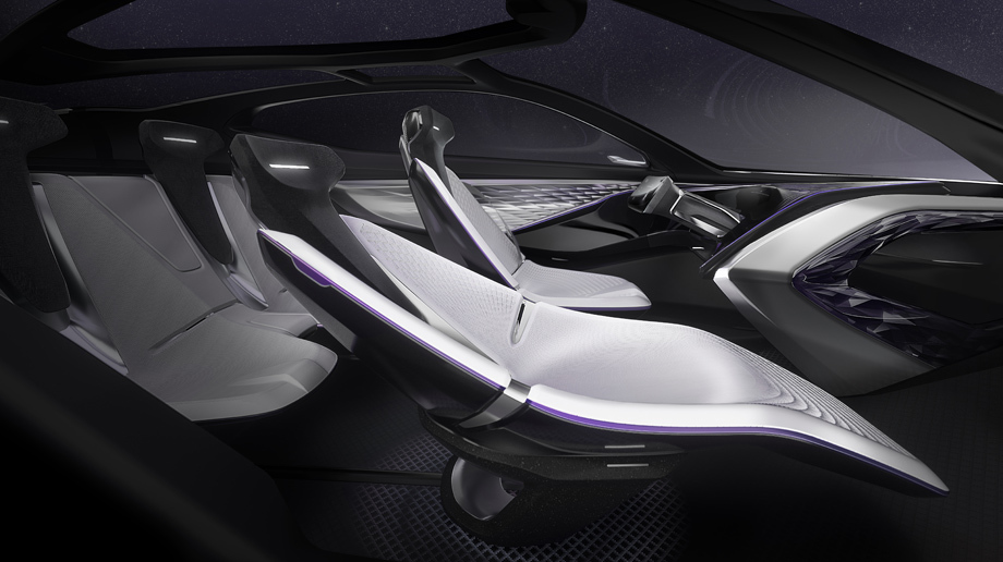 Технических характеристик машины фирма не привела, лишь указав, что данный паркетник обладает полным приводом e-AWD, состоящим из четырёх мотор-колёс и «аккумулятора большой ёмкости», размещённого под полом. Зато обещан «новый тип интерактивного опыта вождения, подходящий для городской среды». Он достигается сочетанием начинки с дизайном, выполненным под девизом «360 градусов». Это подразумевает отличный круговой обзор, линии кокпита, плавно окружающие обитателей, и даже круговую интерактивную подсветку на кузове, реагирующую на приближающегося к машине человека. Она откликается сменой световых «символов» в ответ на жесты.