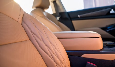 В ассортимент отделки добавлены два новых цвета кожи наппа (серый и коричневый Saddle Brown) с простёжкой на валиках сидений.