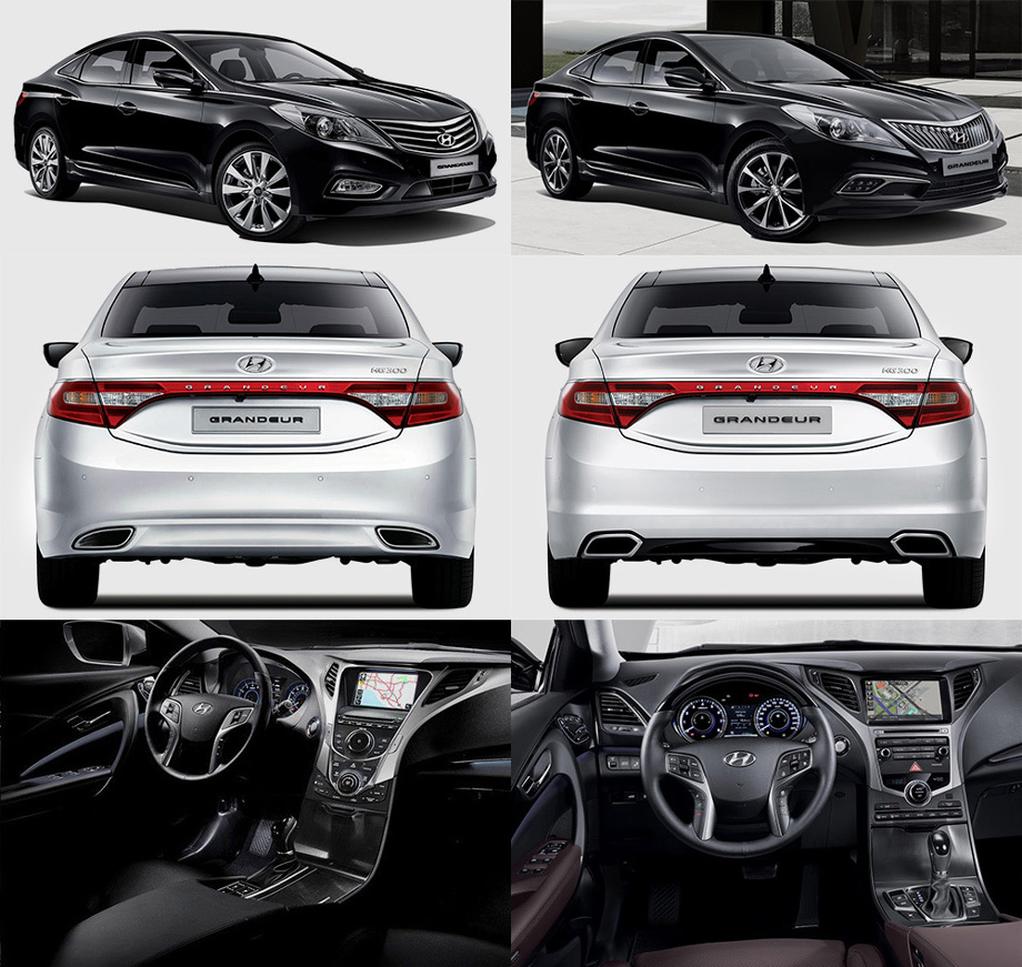 Во внешность седана Hyundai Grandeur, ставшего на 10 мм длиннее, были внесены косметические изменения. Теперь у него другие бампера (в переднем — светодиодные противотуманки) и фальшрадиаторная решётка.