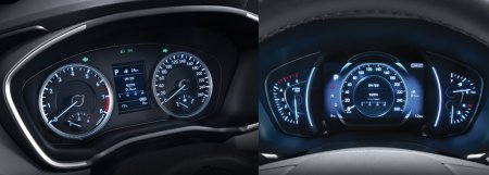 Простенькую, но хорошо читаемую базовую аналоговую приборную панель можно заменить опциональной с семидюймовым дисплеем по центру, на котором присутствует виртуальный спидометр, индикация режимов коробки передач и прочая информация.