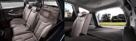 В Южной Корее и США можно будет заказать обычный Santa Fe с семиместным салоном. Механизм складывания сиденья второго ряда улучшен (делается одним движением), а объём багажного отделения достигает 625 л вместо прежних 585.