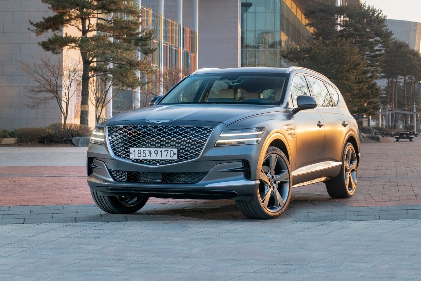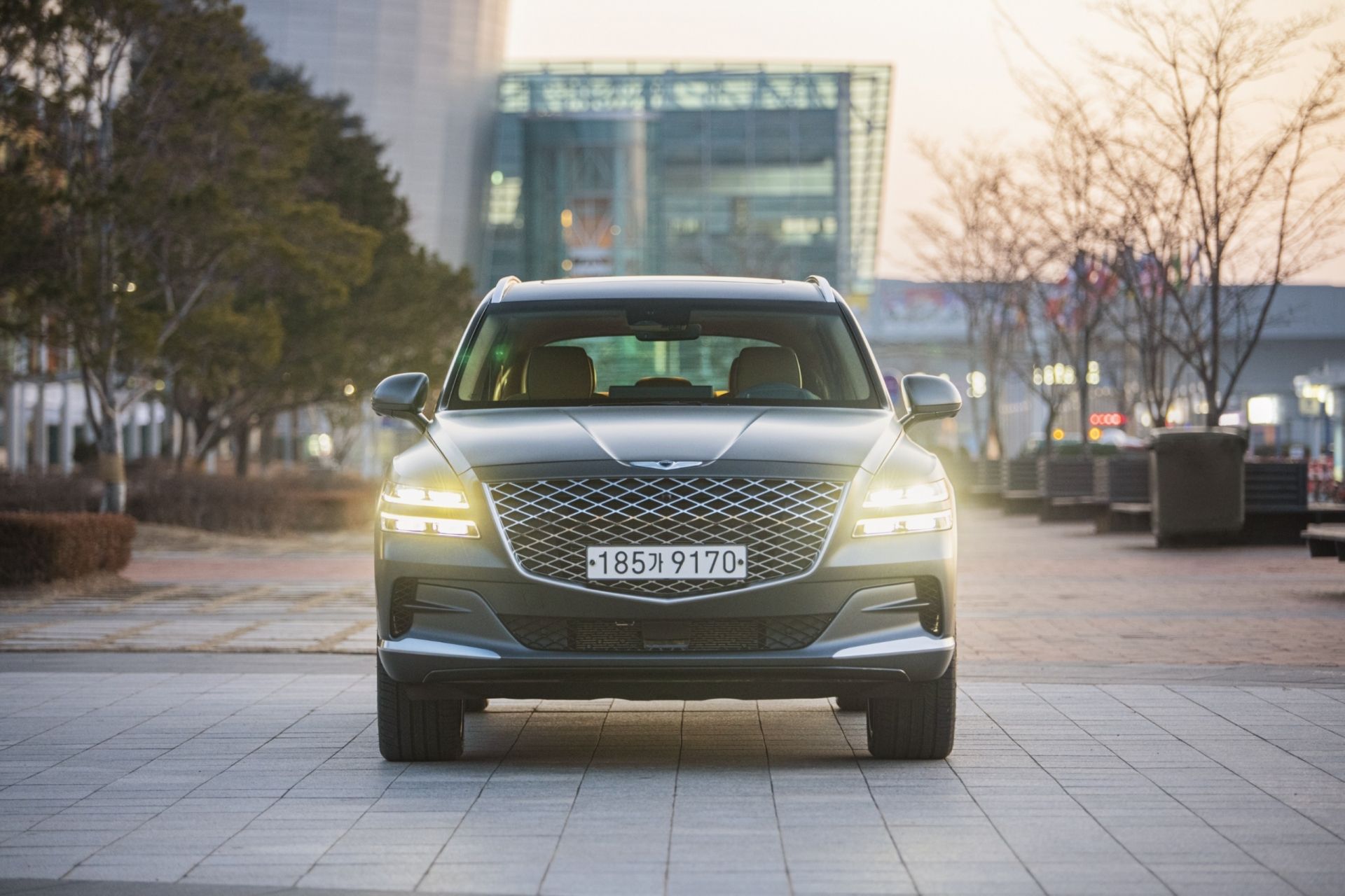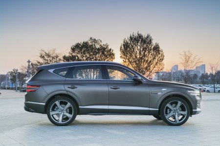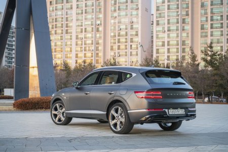 Первый кроссовер премиального корейского бренда, так же как и седаны марки, нарисован в дизайнерской традиции «Athletic Elegance». Автомобиль выглядит массивным, но множество плоскостей, созданных штамповками на капоте, дверях и боковых кузовных панелях, придают кроссоверу своеобразную изящность. Впечатление усиливается от формы оптики - длинные прямые линии, разделенные панелями бамперов, выглядят просто, но дорого. Основная фамильная черта бренда - огромная фальшрадиаторная решетка - выполнена в фирменном стиле G-matrix. Впервые в истории Genesis для модели доступны диски размером 22 дюйма (вариантами более простого оснащения являются 19- либо 20-дюймовые).