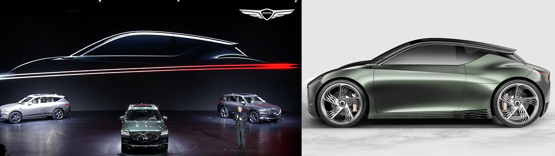 Шесть тёмных силуэтов возникли на экране во время выступления шеф-дизайнера Hyundai Motor Group Люка Донкервольке. «Я знаю, вы хотели бы видеть больше света на этой фотографии, — подначил публику вице-президент, — но пока мы будем хранить тайну».