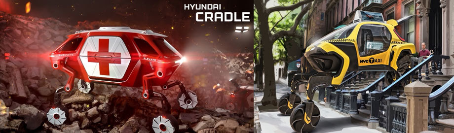 Hyundai всерьёз увлечён роботами и уже строит их самостоятельно. Так, на выставке CES 2019 был презентован шагающе-ездящий концепт Elevate. Обновлённый план «Стратегия-2025» относит роботов к одной из трёх основных категорий — SMD (Smart Mobility Device).