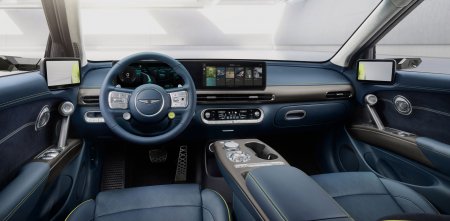 Пара 12-дюймовых дисплеев знакома по сородичам от Hyundai и Kia. С боков добавлены экраны, заменяющие наружные зеркала. Мультируль и климат-контроль у Дженезиса свои, как и шарообразный селектор трансмиссии Crystal Sphere, который вращается и светится на «плавающей» консоли.
