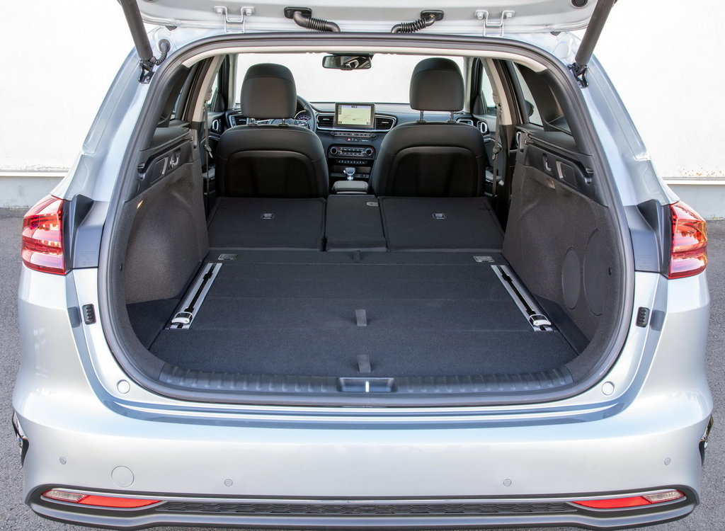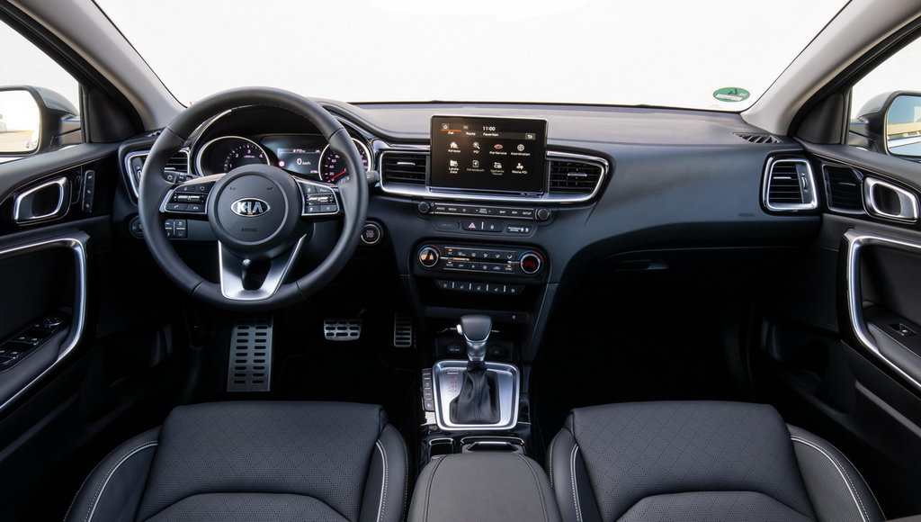 Интерьер нового Ceed SW — в характерном для всех современных автомобилей Kia дизайне с «горизонтальным зонированием» и немного развернутой к водителю центральной консолью. В зависимости от комплектации новый KIA Ceed оснащается 5-, 7- или 8-дюймовым дисплеем мультимедийной системы. Для синхронизации смартфонов есть Android Auto, Apple Carplay и MirrorLink. В топ-версиях предлагается аудиосистема JBL. Уже в комплектации Comfort — первой после базовой Classic — можно получить такие опции, как подогрев рулевого колеса, сидений и даже специальный электрический отопитель салона (можно быстрее прогреть салон, пока температура мотора еще невысока). Зарядка USB дополняет 12-вольтовую розетку (еще одна имеется в багажнике), а опционально предлагается беспроводная зарядка для смартфона. Очень вместительное багажное отделение универсала дополняют несколько ниш, в одну из которых можно убрать шторку багажника. С помощью удобного механизма спинки задних сидений могут быть сложены дистанционно — прямо из багажника.