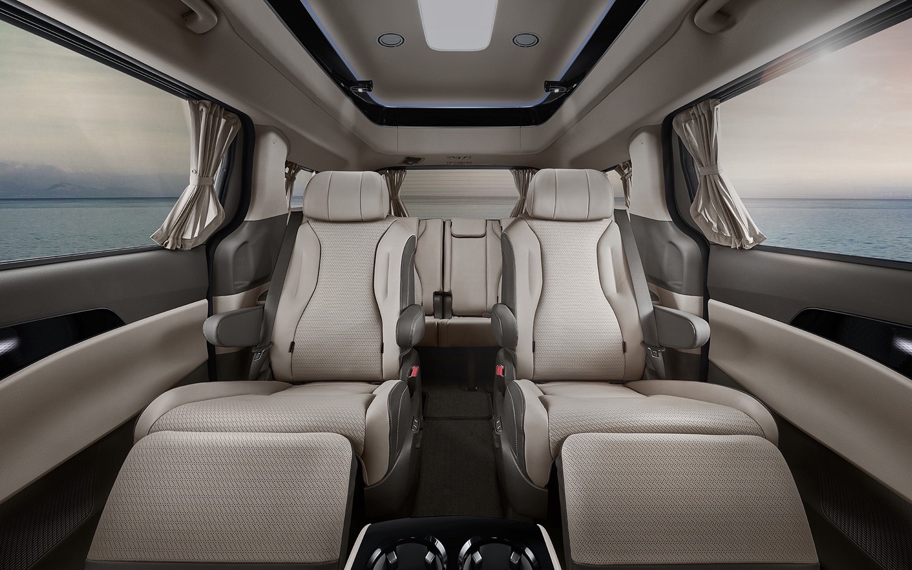 Классические шторки за прозрачными стёклами рождают ассоциации с дорогими седанами вроде модели Toyota Century. В Азии такие приёмы — показатель особого статуса. С новеньким Карнивалом всё именно так. Внутри производитель обещает неповторимую атмосферу комфорта за счёт продвинутого освещения. Медиасистема умеет принимать цифровой сигнал HD-DMB, а также имеет порты HDMI и USB. Модификация Hi-Limousine может быть семи- или девятиместной, а скоро обещают появление и ультралюксового исполнения на один лишь квартет. Напомним, что остальные версии корейского автомобиля могут взять на борт до одиннадцати пассажиров.